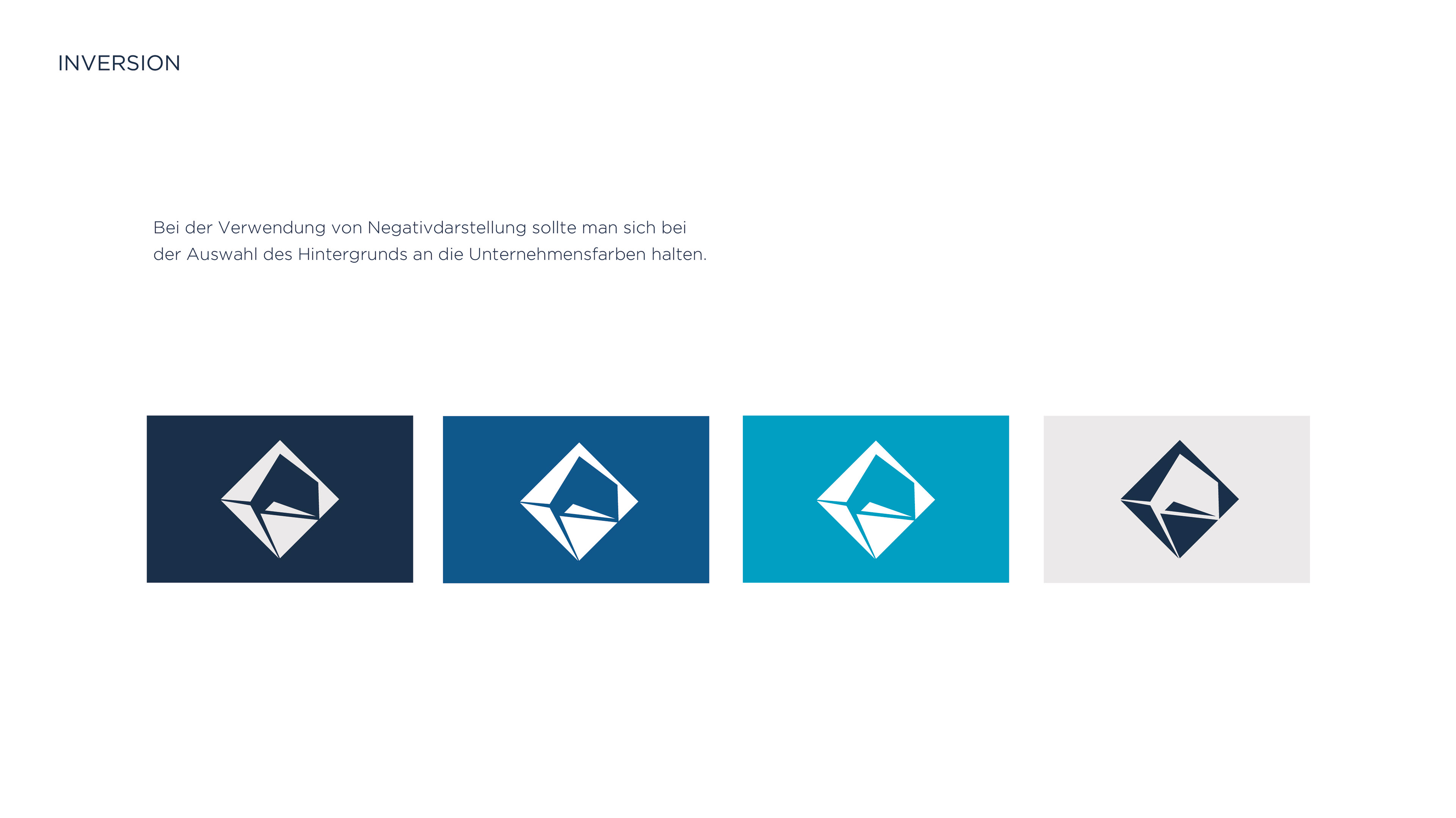 - Hauptlogo und verschiedene Varianten (Vollfarbe, Monochrom, Inversion)
